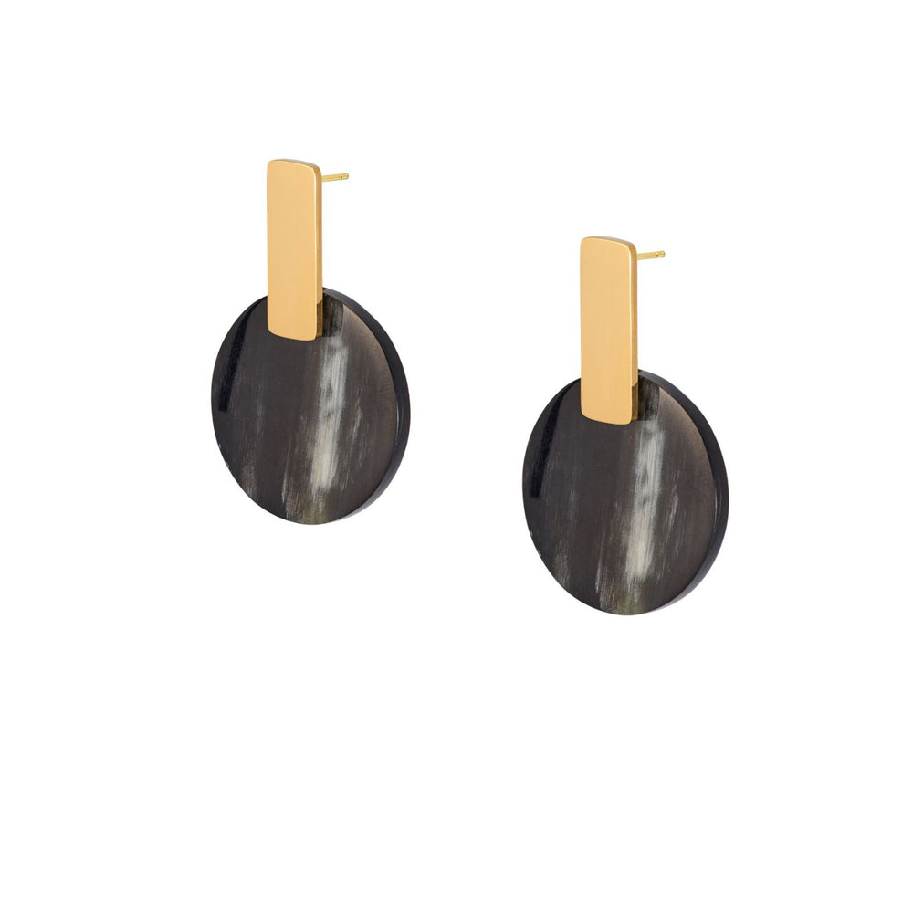 Black Horn & Gold Plated Round Disc Earrings