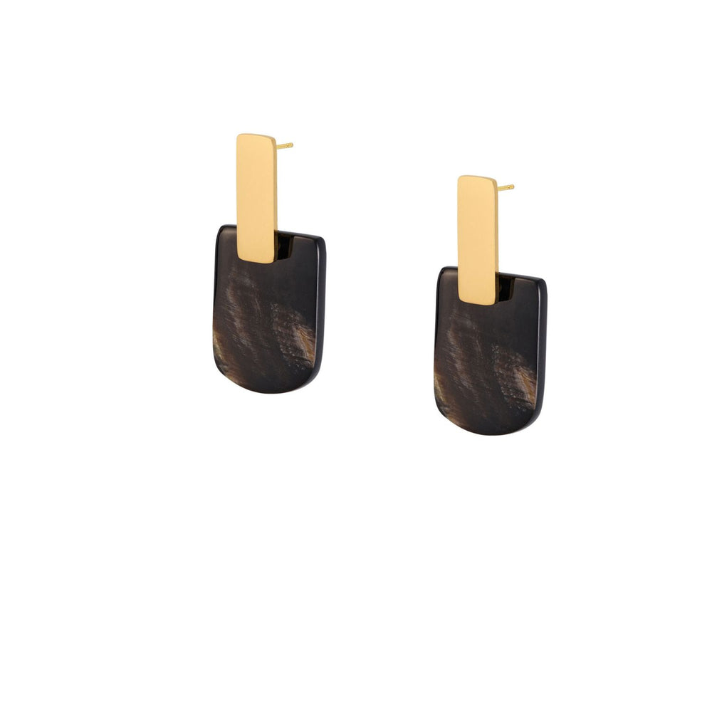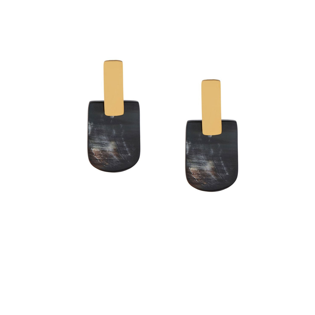 Black Horn & Gold Plate oblong shaped Drop Earrings