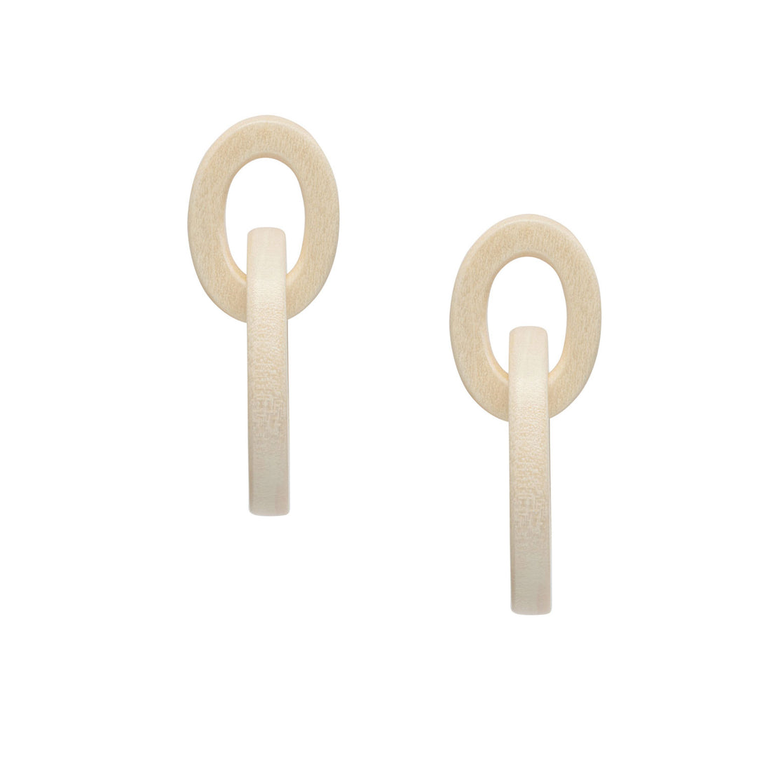 Aria - Interlocking Oval White Wood and gold plate Link Earrings