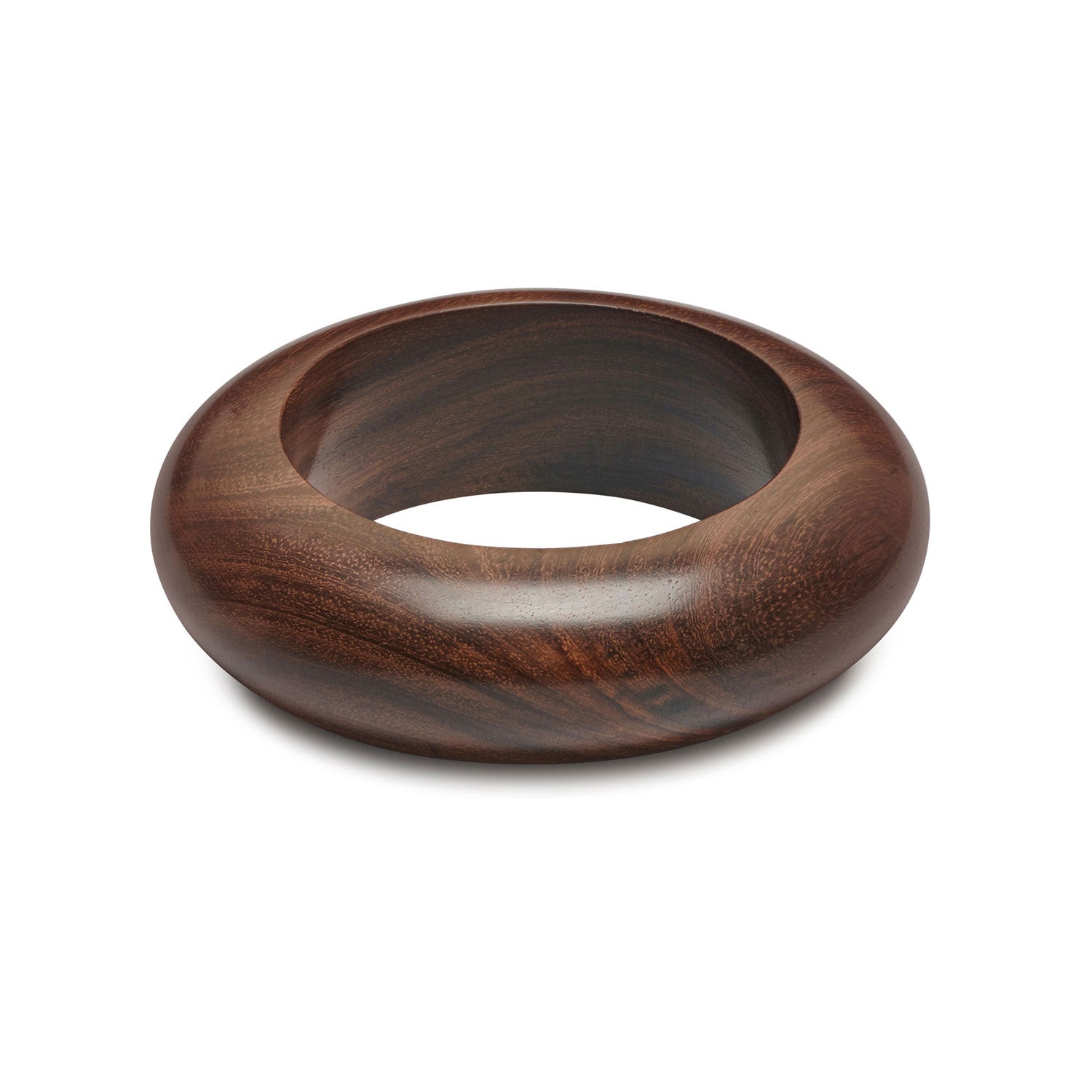 A beautifully rounded brown wooden bangle, handcrafted by Balinese artisans using sustainable wood. Wear solo or stack with others for a bold, natural look.