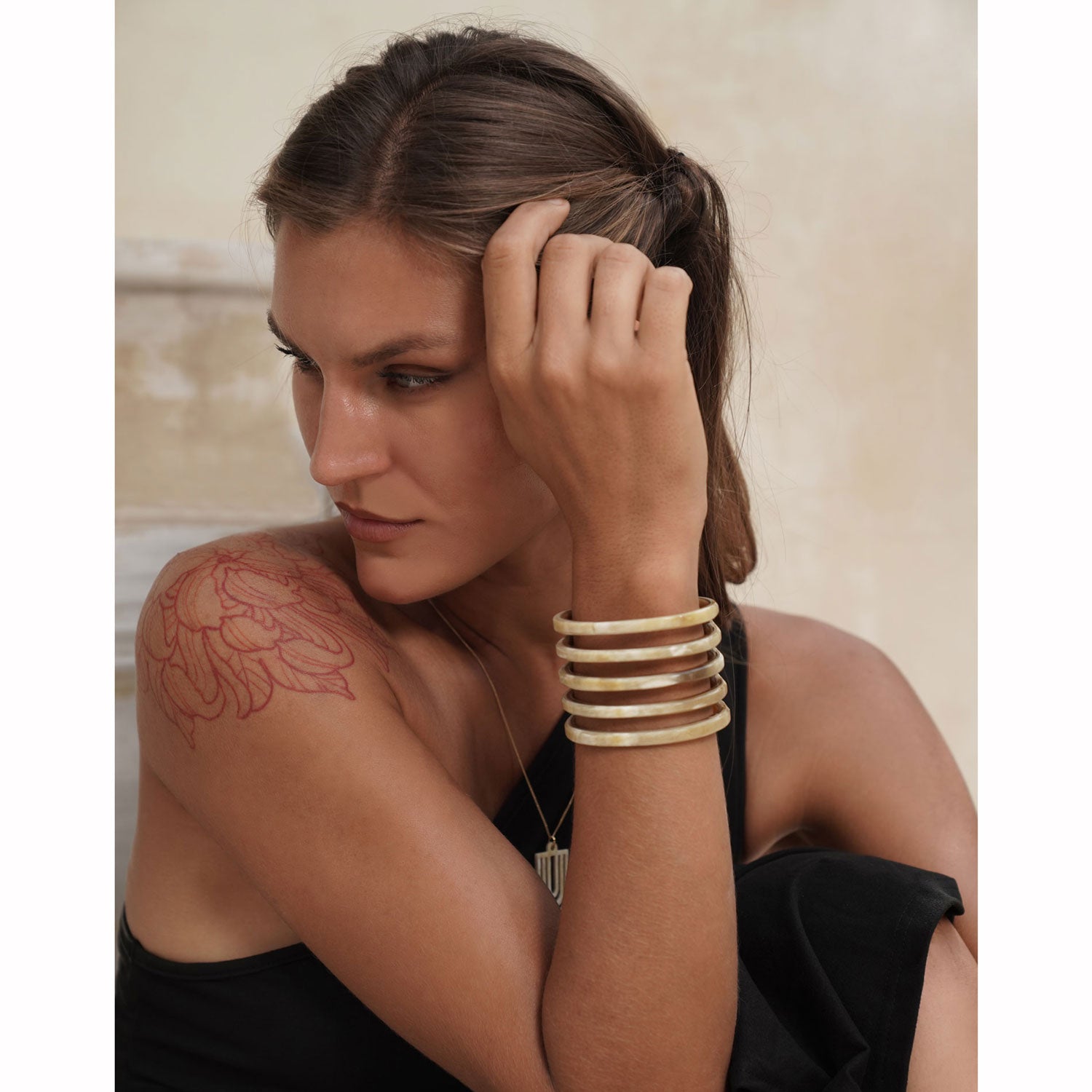 This gorgeous natural white wide ribbed horn cuff is the widest horn cuff in our collection. It measures 5.5cm in width but despite its chunky design, it fits very comfortably on the wrist.