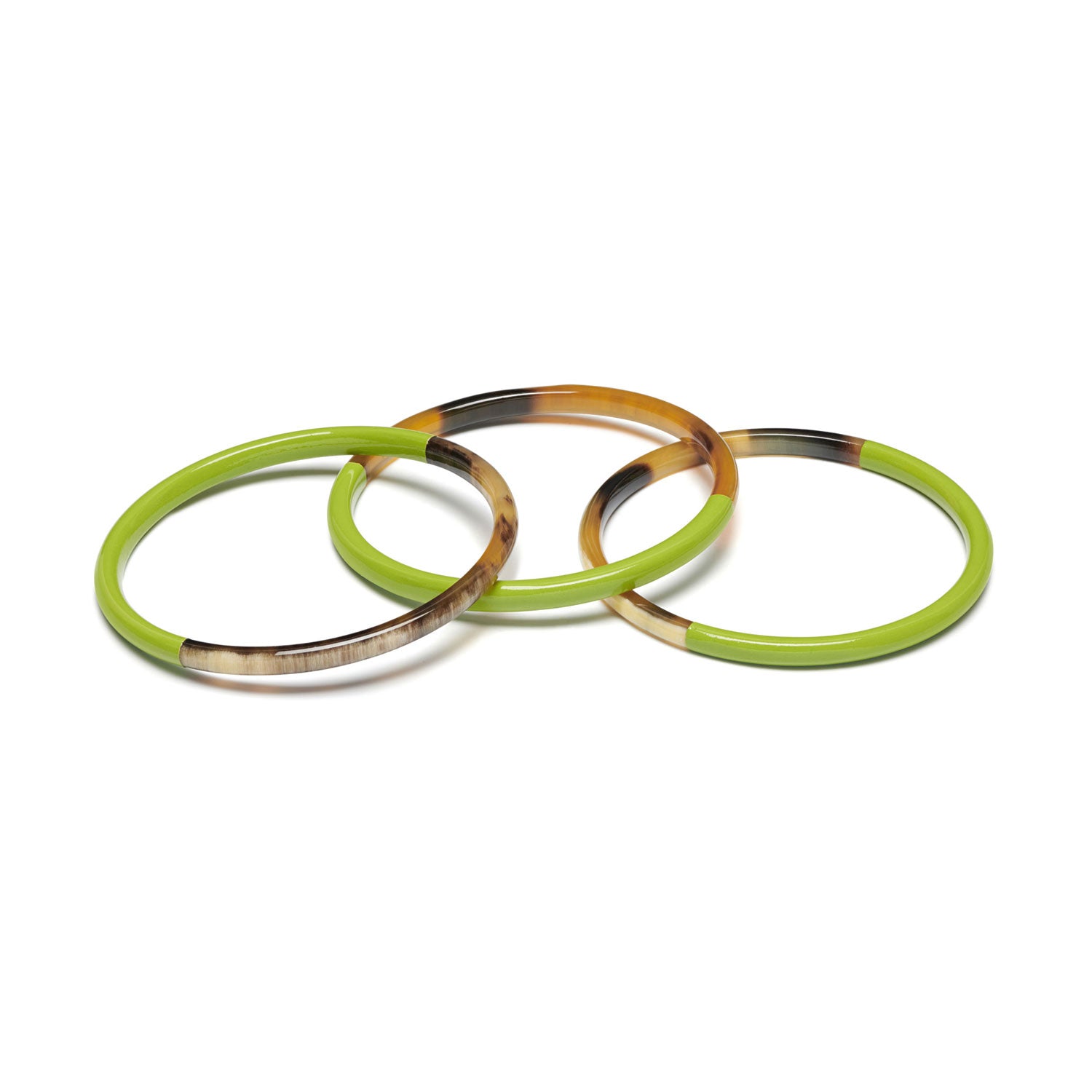 Zuri Set of three Slim lime green and brown Natural Horn Bangles