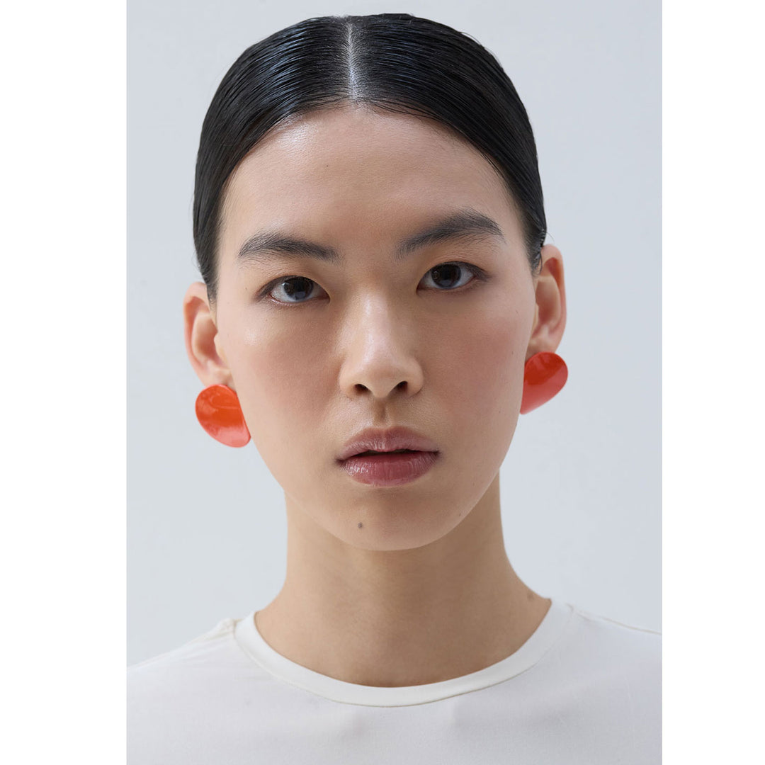 Add a pop of sophisticated style to your look with these lightweight curved stud earrings. Handcrafted from natural buffalo horn and finished with a stunning orange lacquer, these curved studs are the perfect accessory that will elevate any outfit while remaining comfortable enough for all-day wear.