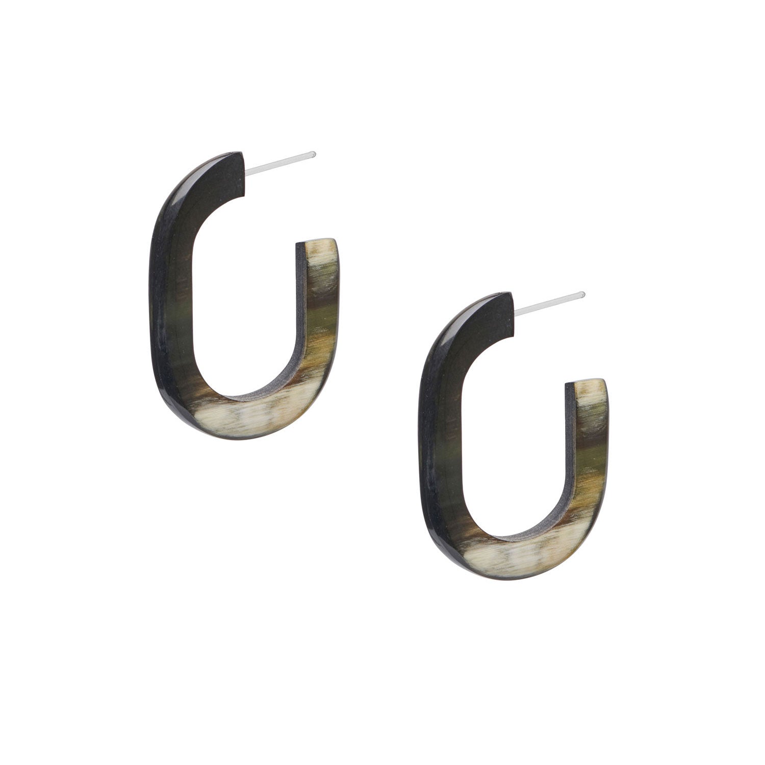 These black oblong hoop earrings are handmade from ethically sourced buffalo horn, a sustainable by-product of the farming industry. Each pair is naturally unique, with subtle colour variation through the horn.