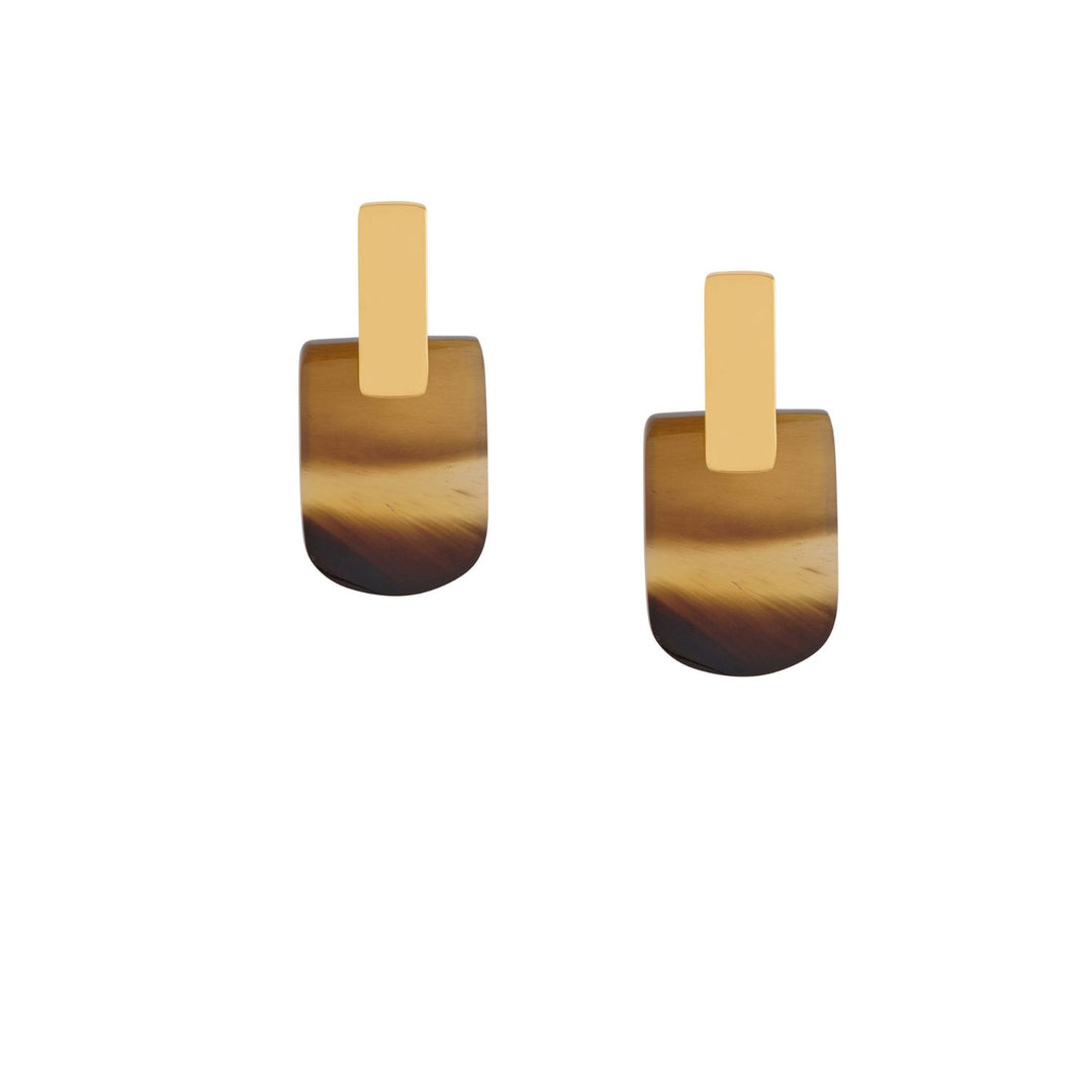 Brown Horn & Gold Plate oblong shaped Drop Earrings