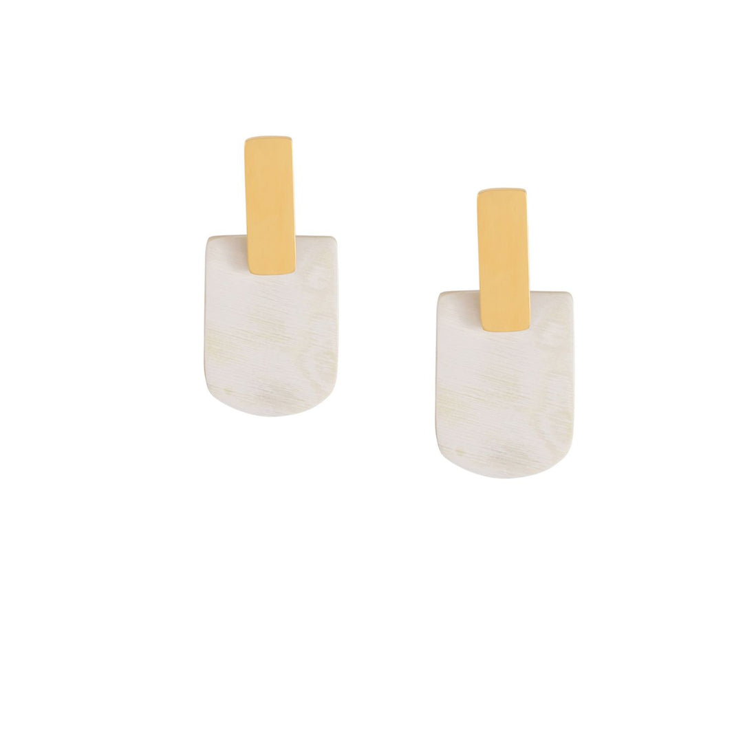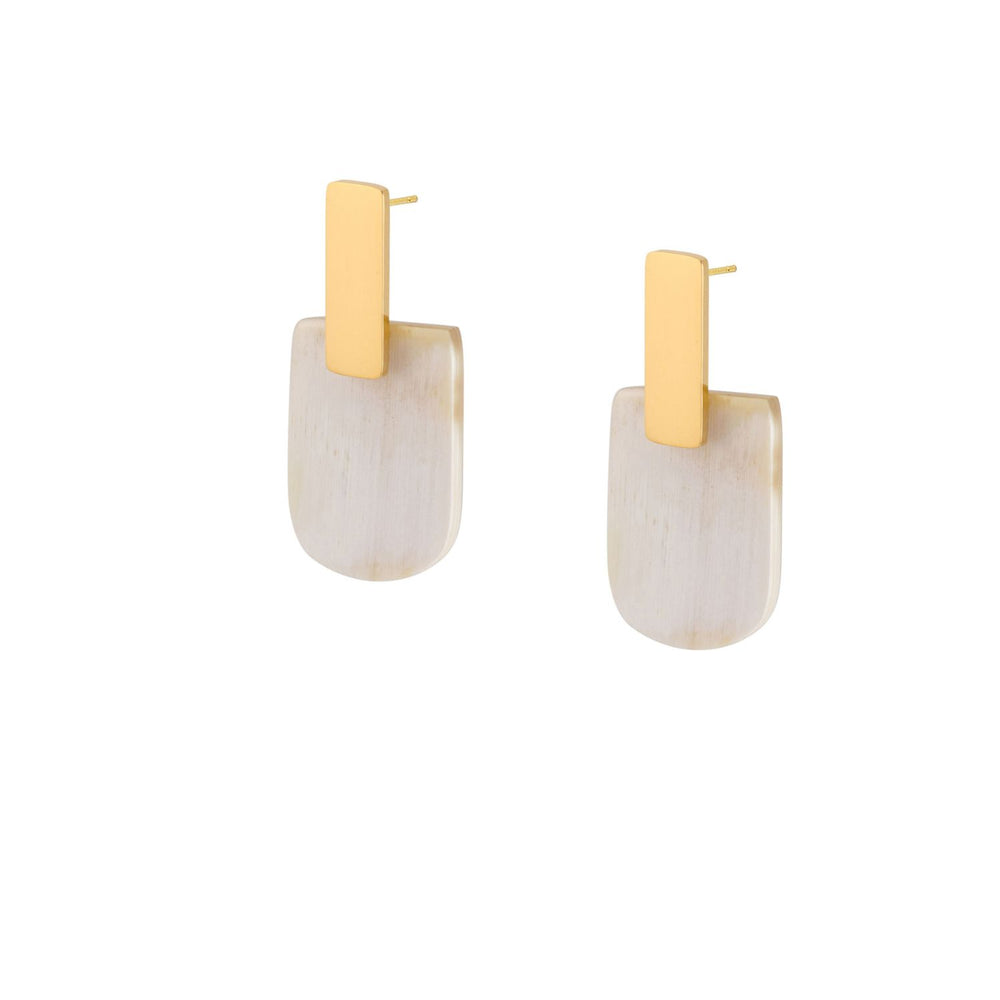 White Horn & Gold Plate oblong shaped Drop Earrings