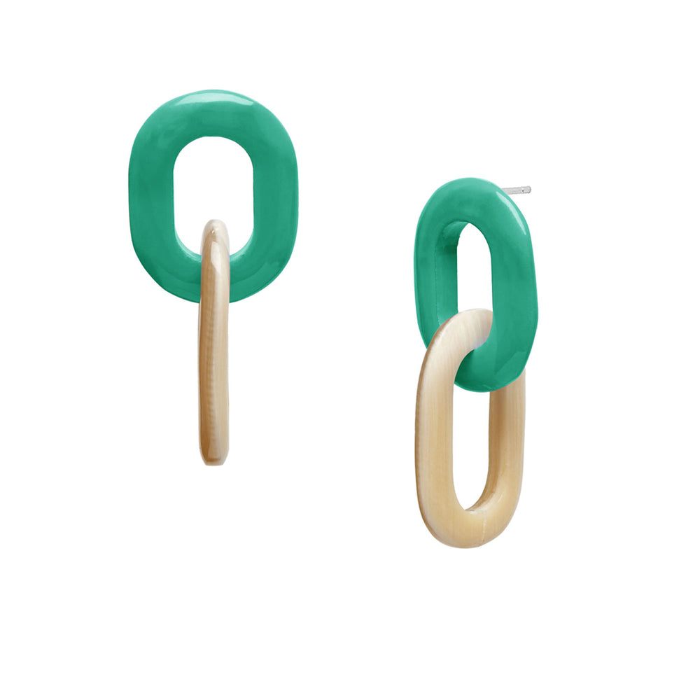 Lime Green Lacquered and Brown Natural oval link horn bracelet