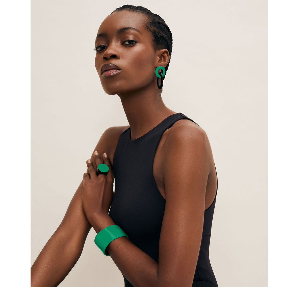 Chartreuse and black oval link horn earring