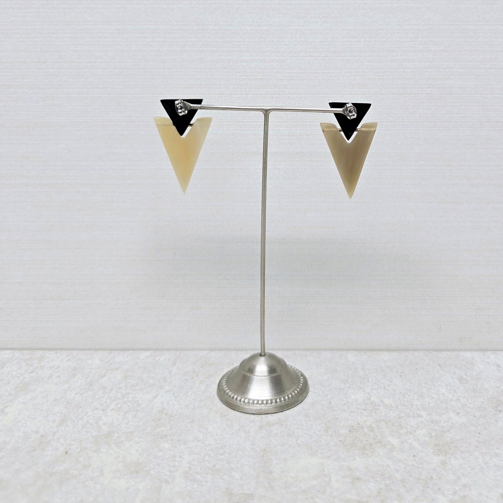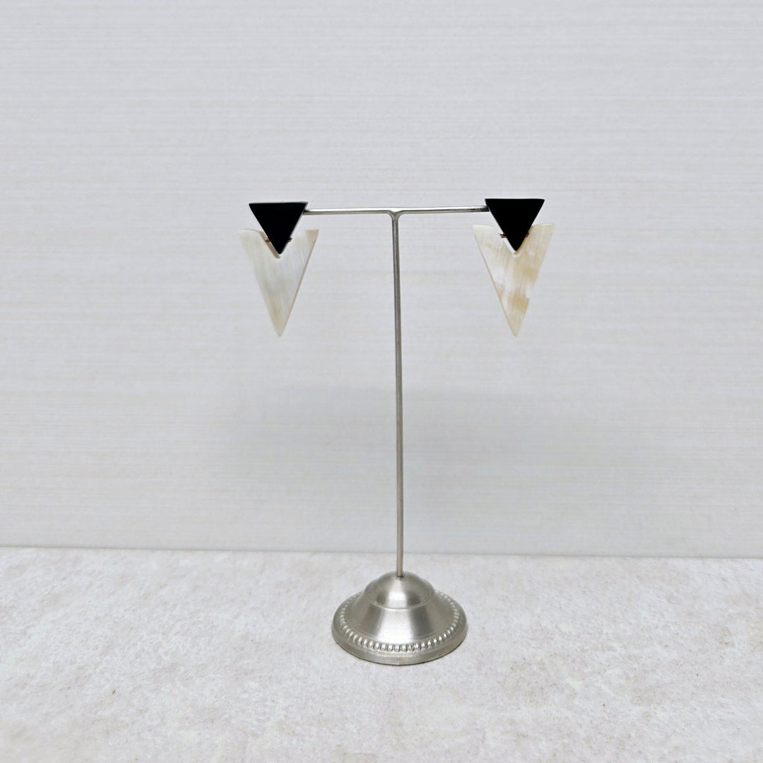 Black oval and triangle horn earring