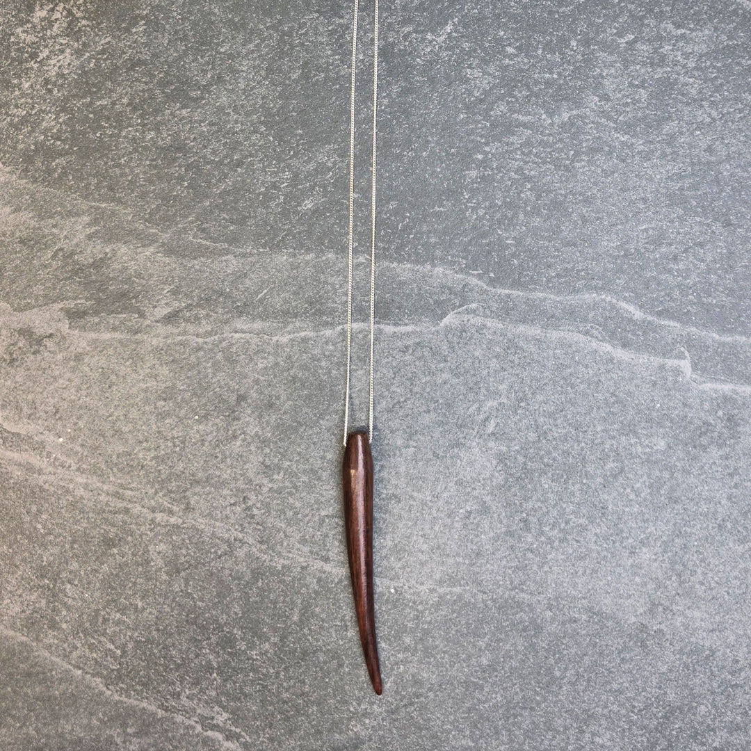 Medium Brown wood Spike Pendant - Silver