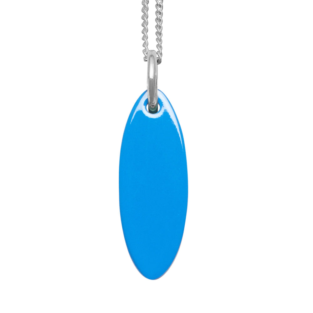 Bright blue and black reversible oval pendant - Silver