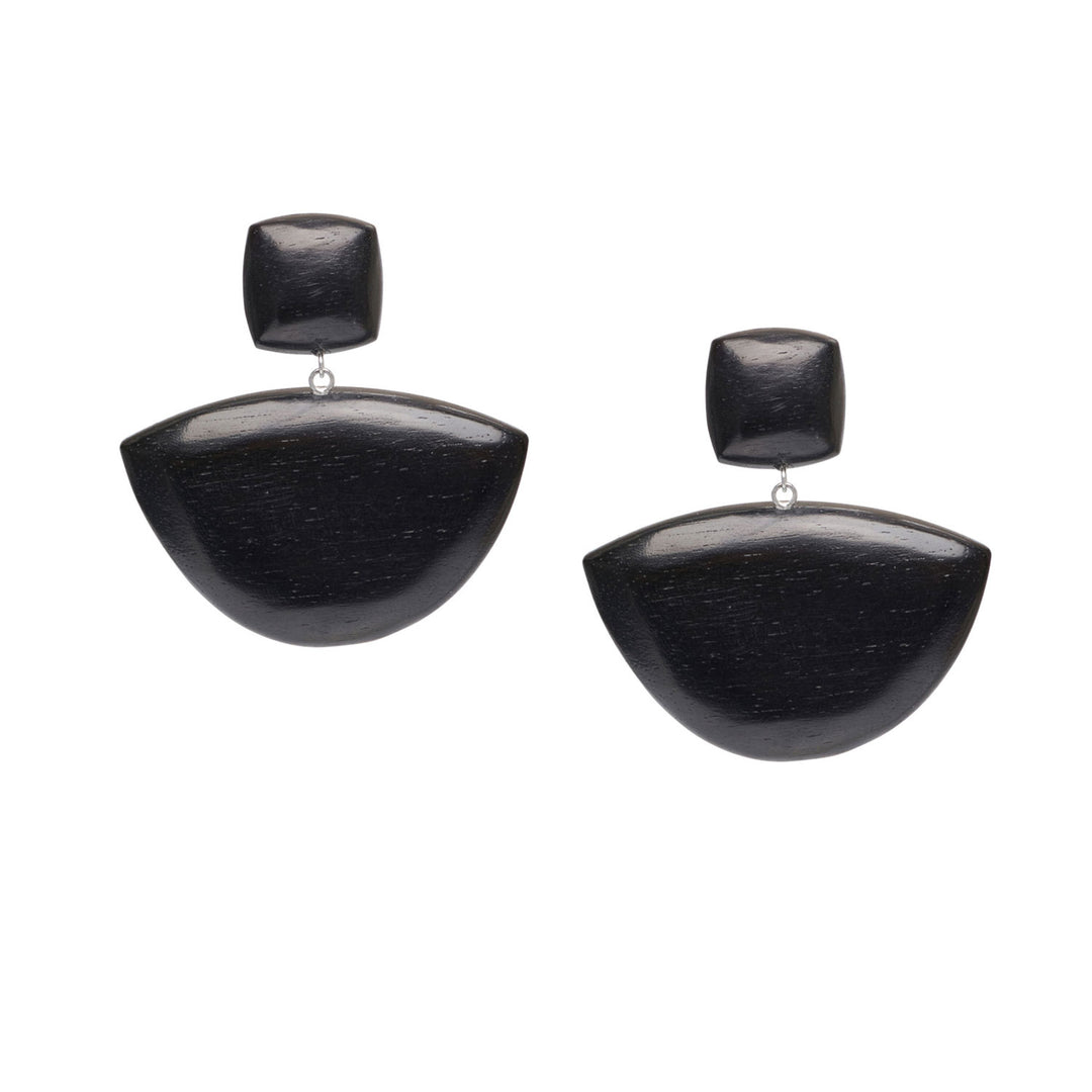 Aria - Interlocking Oval Black Wood and Silver Link Earrings