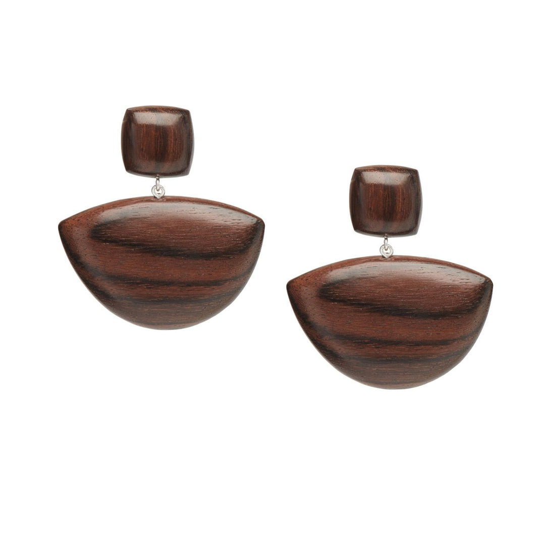 Mahika Brown Wood and Silver Statement Drop Earrings