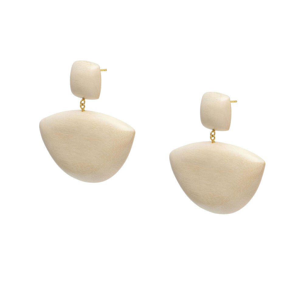 Aria - Interlocking Oval White Wood and gold plate Link Earrings