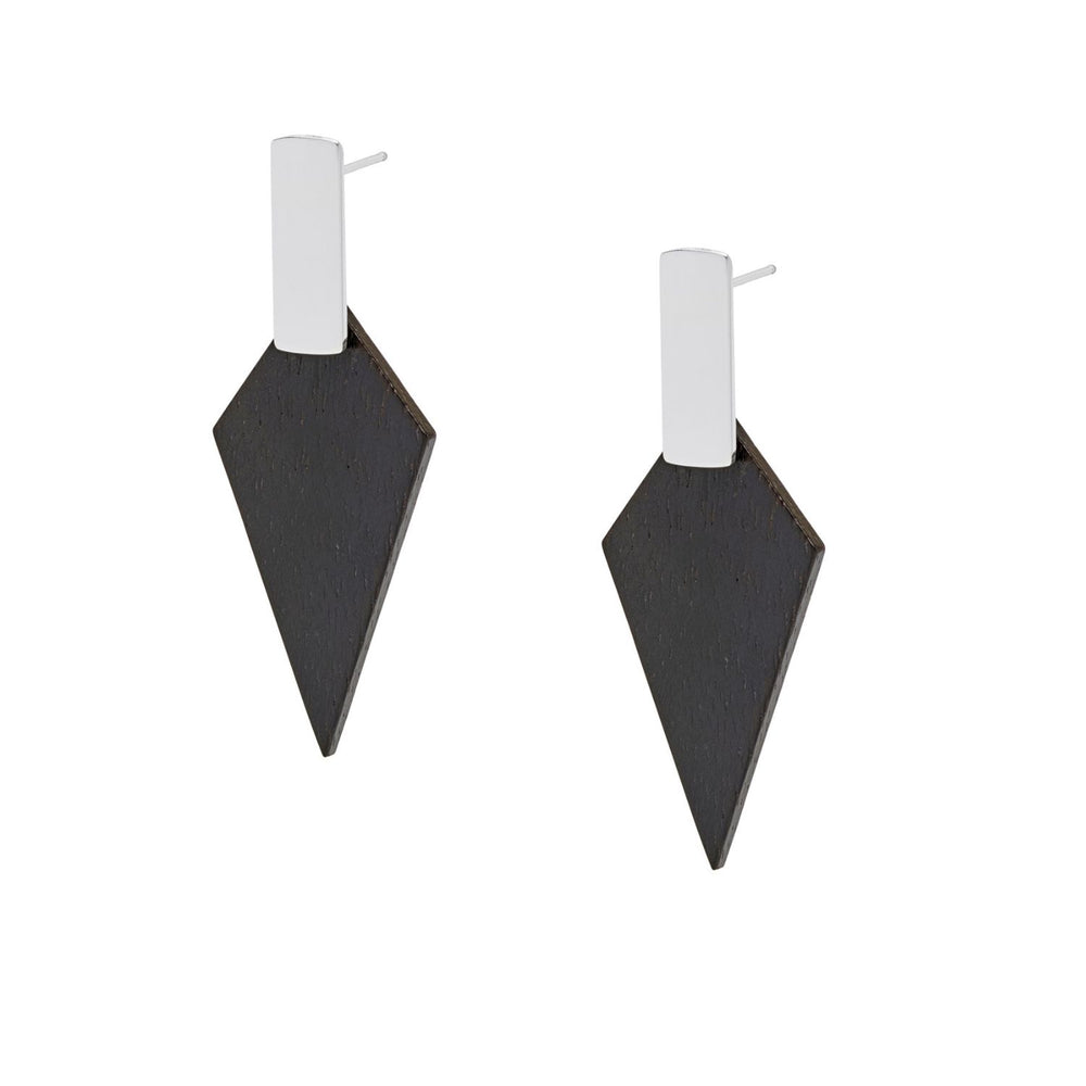 Kite Geometric Black Wood and Silver Stud Earrings