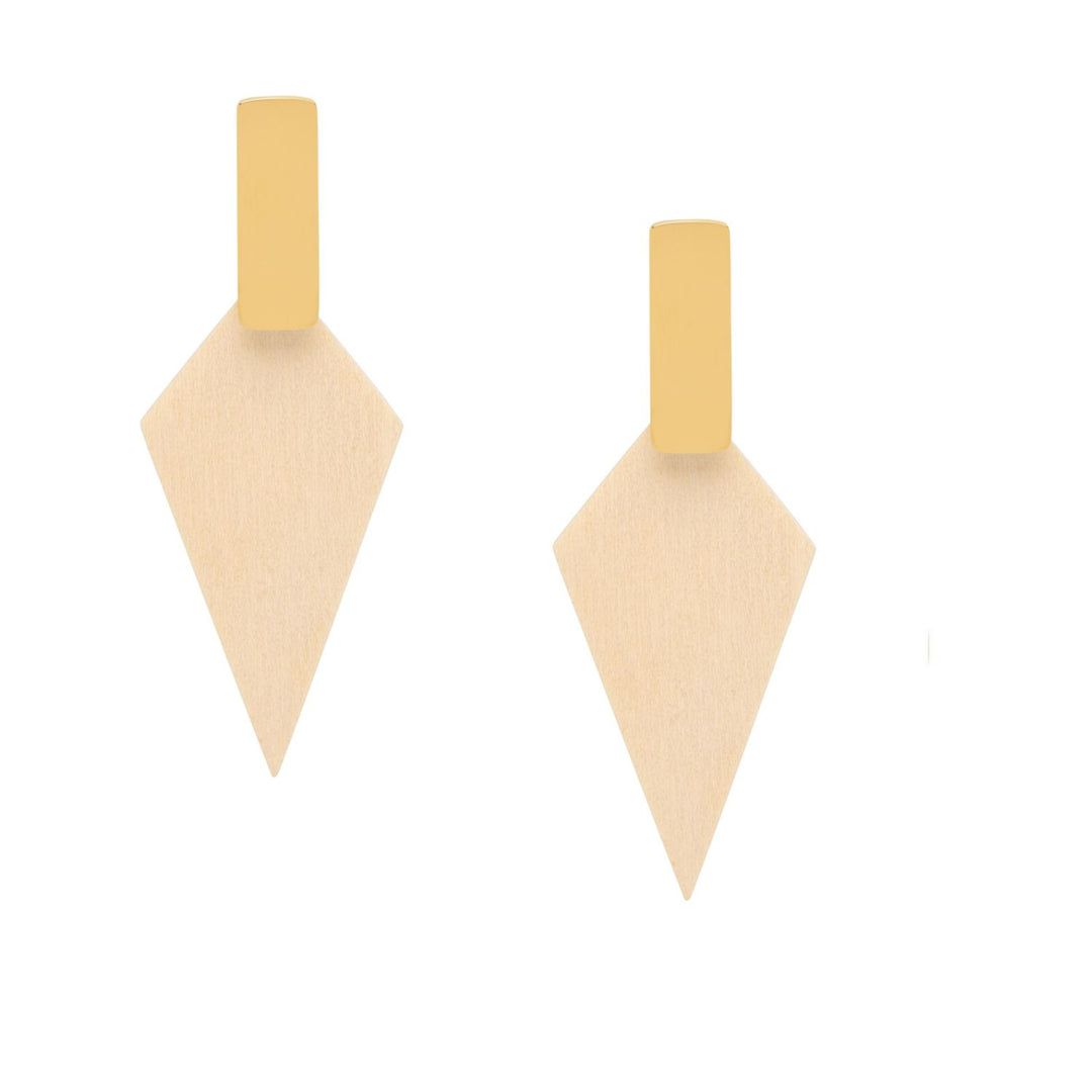 Kite Geometric Brown Wood and Gold Stud Earrings