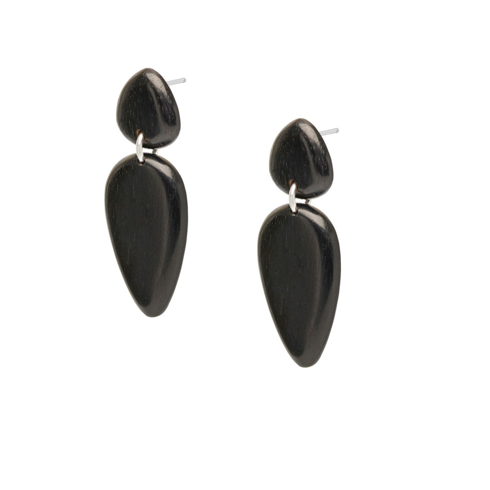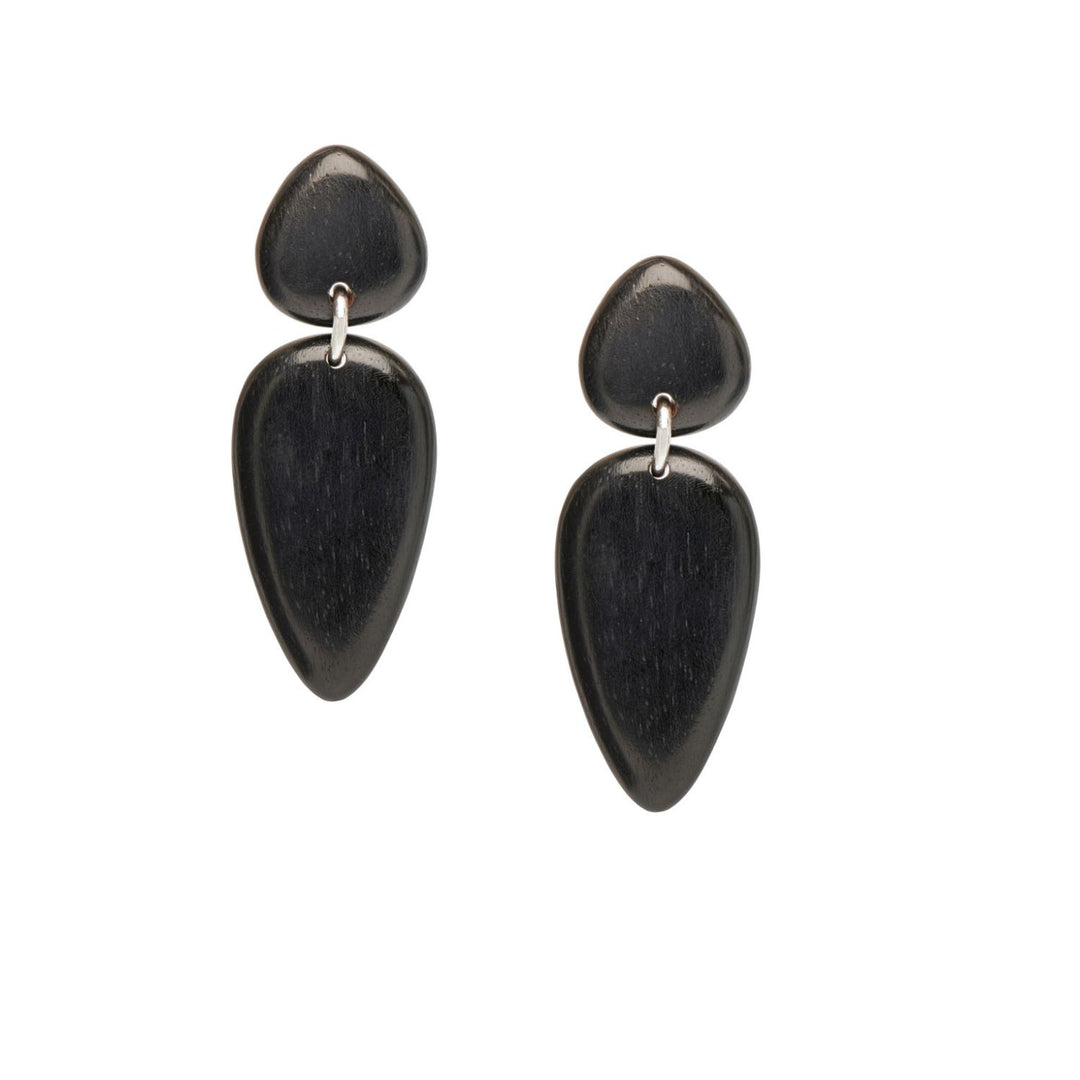 Nala Black Wood and Silver teardrop Earrings