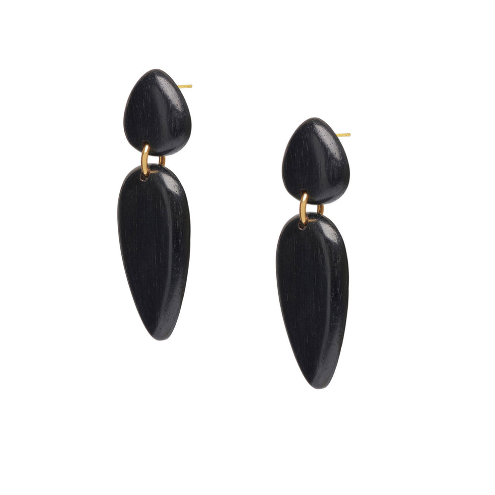 Nala Black Wood and Gold teardrop Earrings