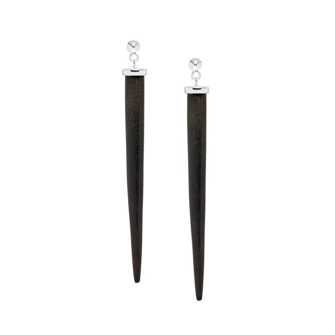 Tala Black Wood and Silver Long Spike Earrings
