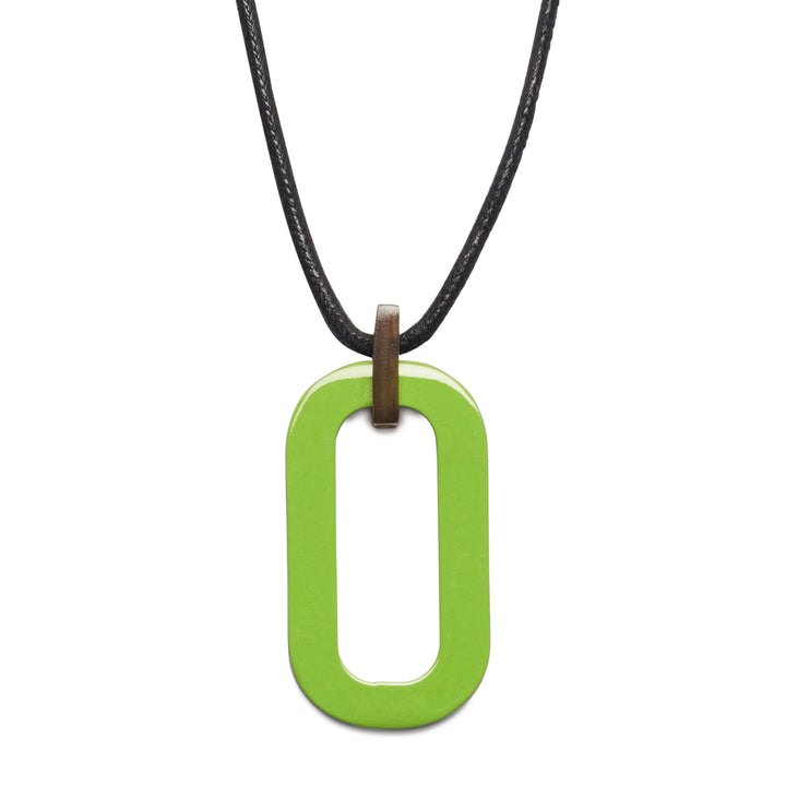 This beautiful pendant is also reversible. One side features our gorgeous Lime Green lacquered horn and the other is brown natural horn. The pendant can be worn on either side, giving you the option of two colours, which makes this lovely pendant super versatile and will match many outfits.