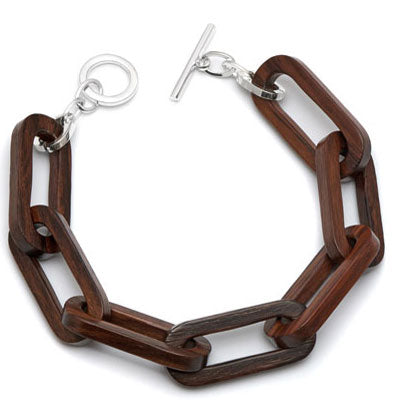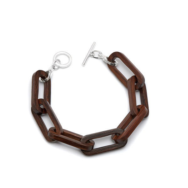 This Rosewood rectangular link wooden bracelet has been carved by hand and set with a sterling silver clasp. Super comfortable and easy to wear, this lovely bracelet looks great worn alone or combined with other wrist wear.