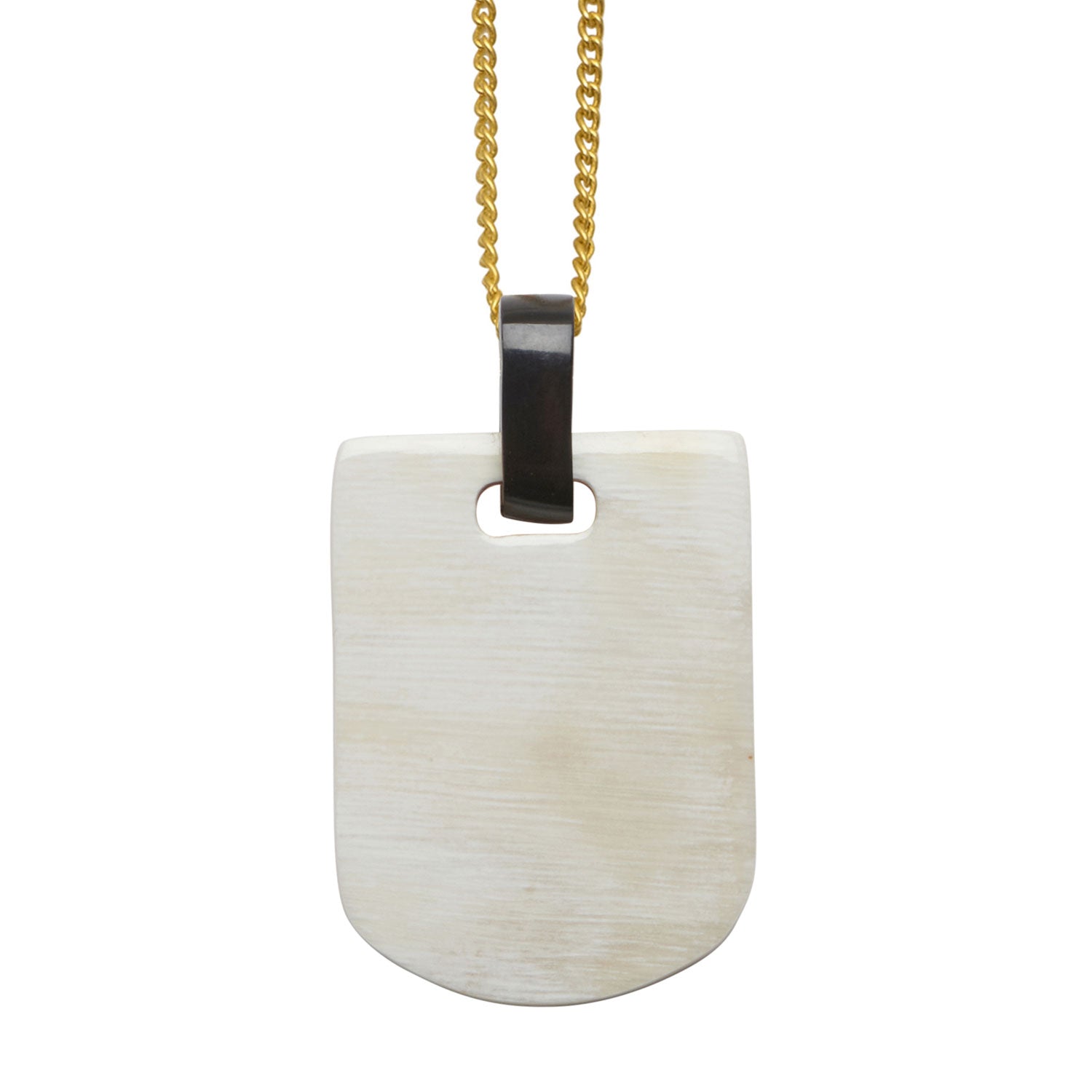 This bold, dog-tag-inspired white horn pendant is a must-have for any jewellery lover with an eye for contemporary style. Handcrafted from sustainably sourced horn, each piece is a celebration of natural beauty, with unique organic textures and grain patterns that make every pendant one of a kind.