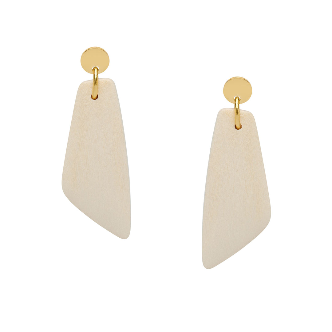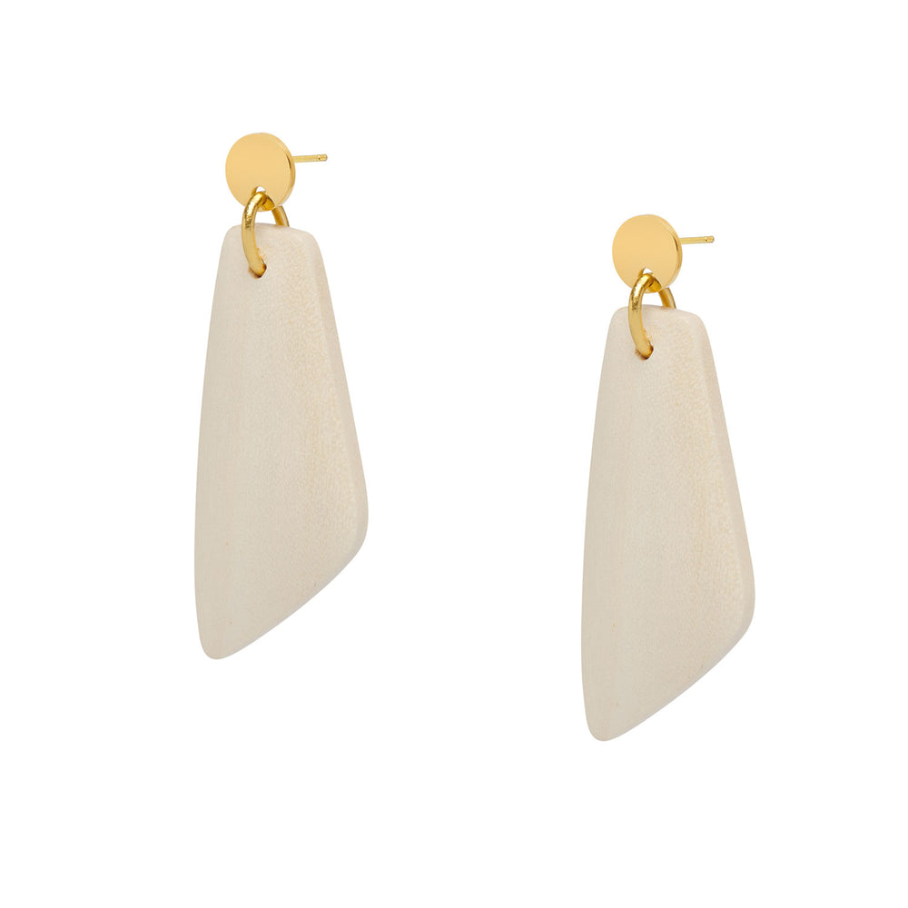 These lovely white wood and gold plate trapezium drop earrings are a super versatile earring and will look great with a casual day look or on a night out for a more dressed-up style.